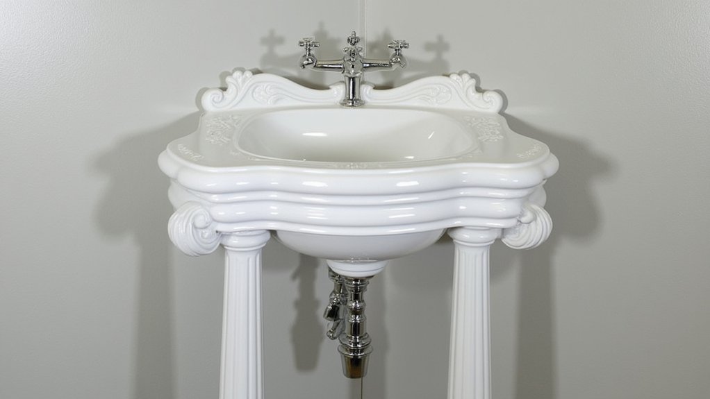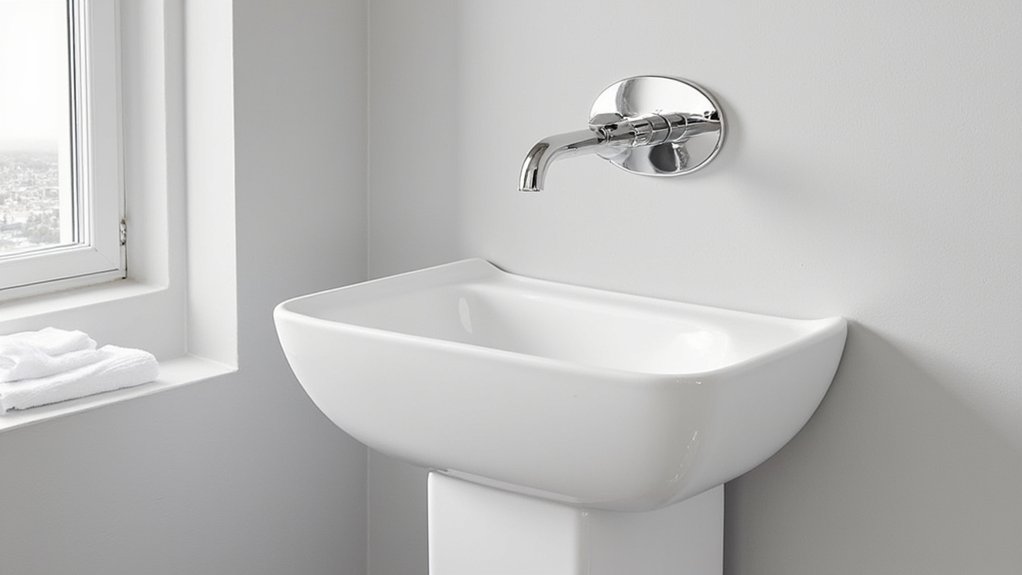 Upgrading your guest bathroom can start with a modern pedestal sink for a clean, classic look. You’ll love how it saves space, standing at about 34 inches tall, with a basin around 20 inches wide. It’s perfect for small spaces and installs in just a few hours.