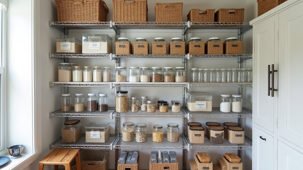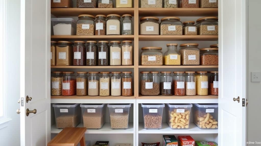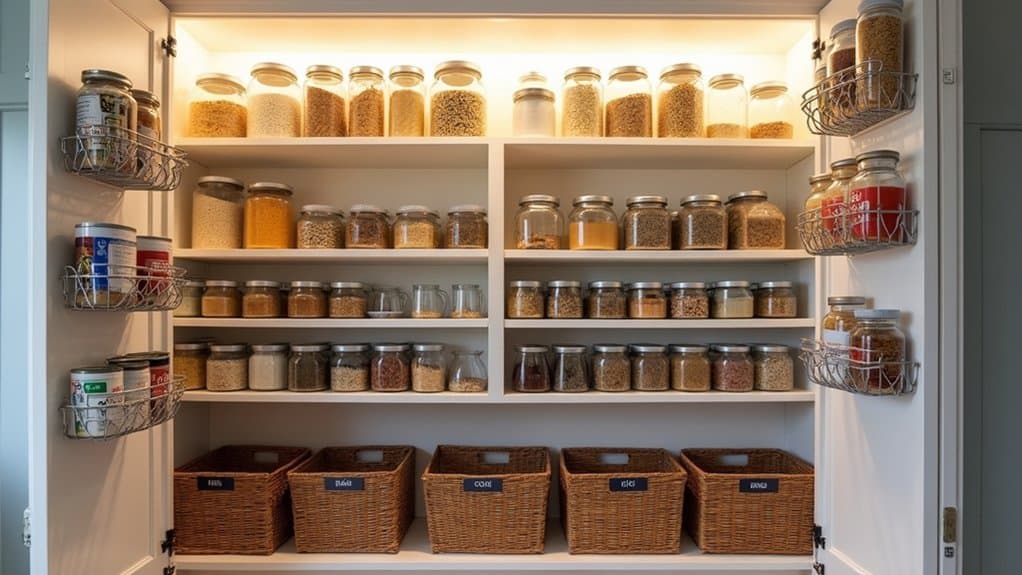 Hey, let’s tackle that cramped pantry of yours! I’ve struggled with overflowing shelves myself—trust me, it’s a mess until you get a game plan. Start by eyeing those unused vertical spaces; a simple adjustable shelf can double your storage if you stack it right, maybe 12 inches apart. There’s more to uncover with smart tricks I’ve picked up. Stick with me to transform that chaos!