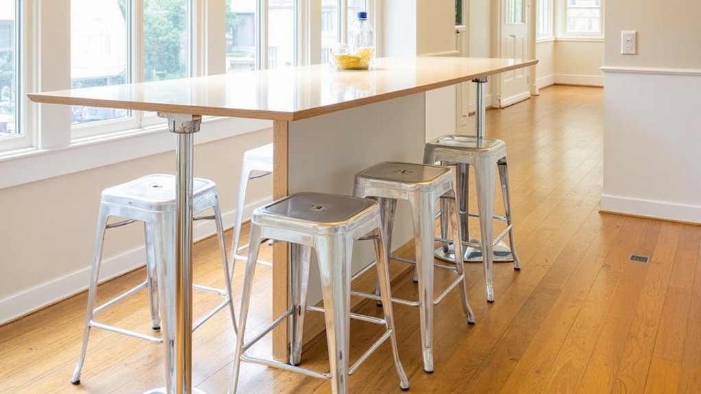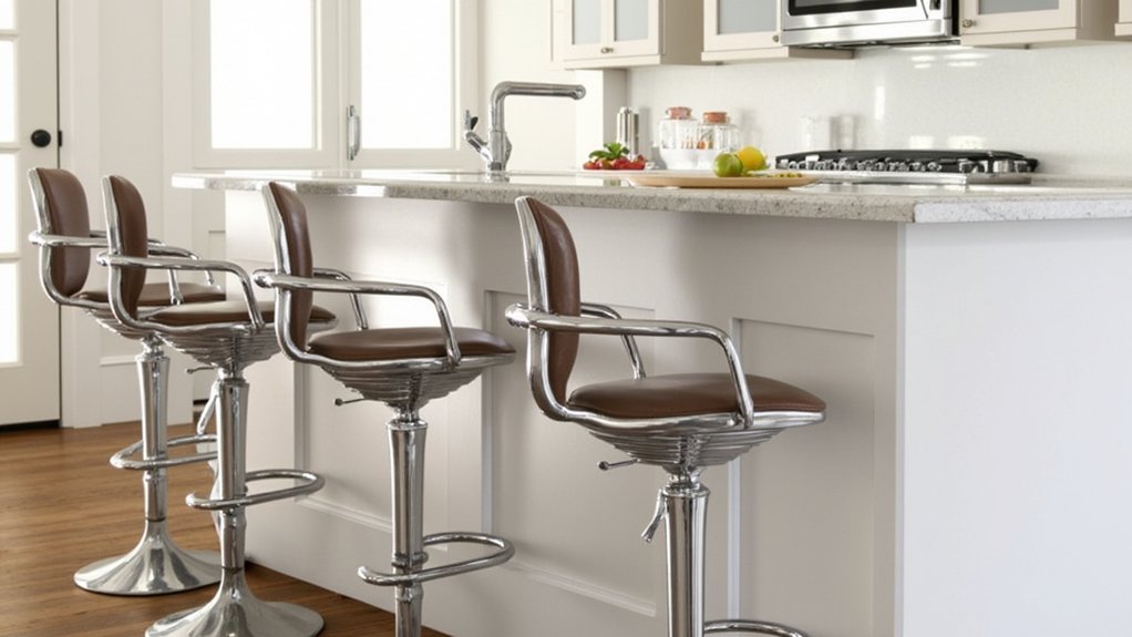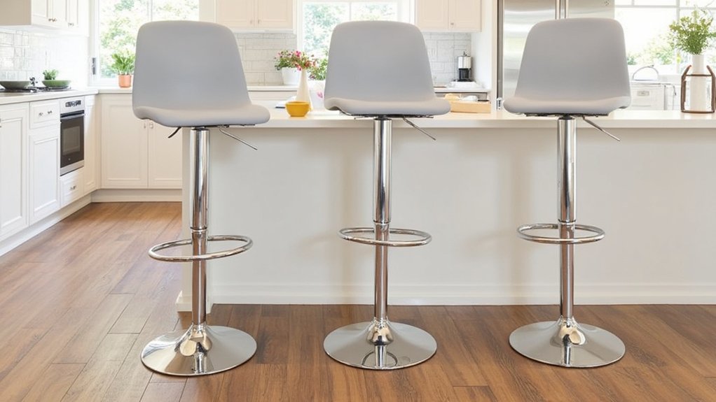 When you’re looking to enhance your kitchen’s seating, consider adjustable counter stools for their flexibility and modern appeal. They’re perfect for any counter height, typically ranging from 24 to 36 inches, and adjust in seconds.