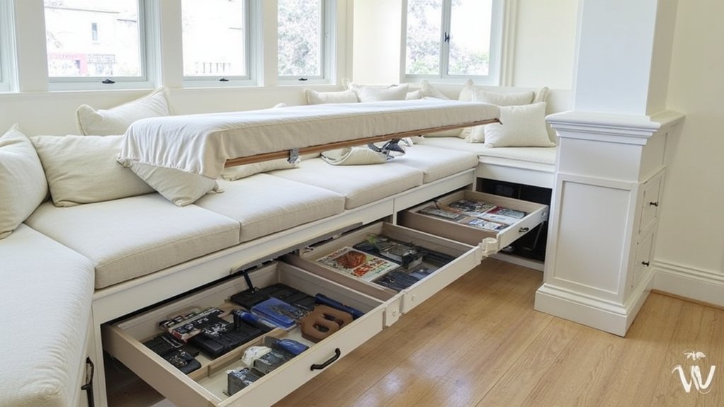 - Under-Seat Drawers: Install drawers under a 36-inch seat; they’re great for quick grabs.