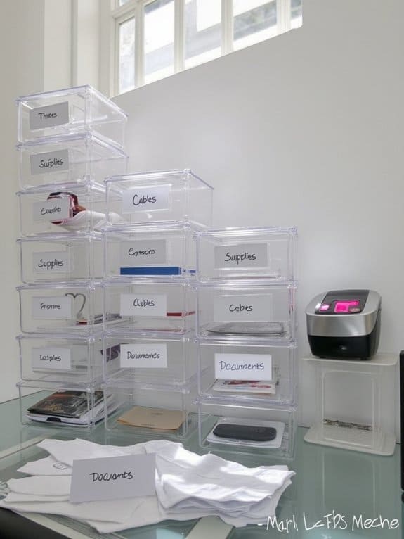 For optimal results, use waterproof labels on frequently handled items and consider color-coding different categories of supplies. This simple yet effective approach helps maintain long-term organization and workplace efficiency, allowing you to quickly find what you need when you need it.