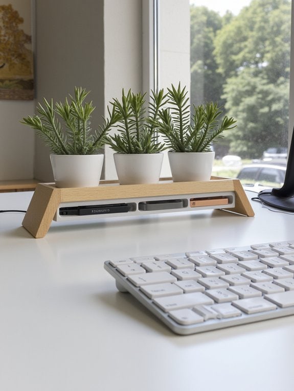 The key is selecting appropriate stands and plants that work harmoniously in your office setting. Multi-tiered displays should be positioned near natural light but away from electronics, and fitted with compact plants that won’t overwhelm the workspace. Waterproof materials protect desk surfaces, while grouping plants with similar care needs simplifies maintenance.