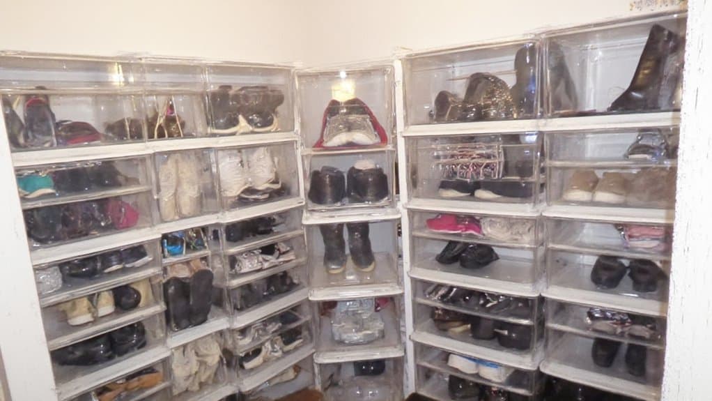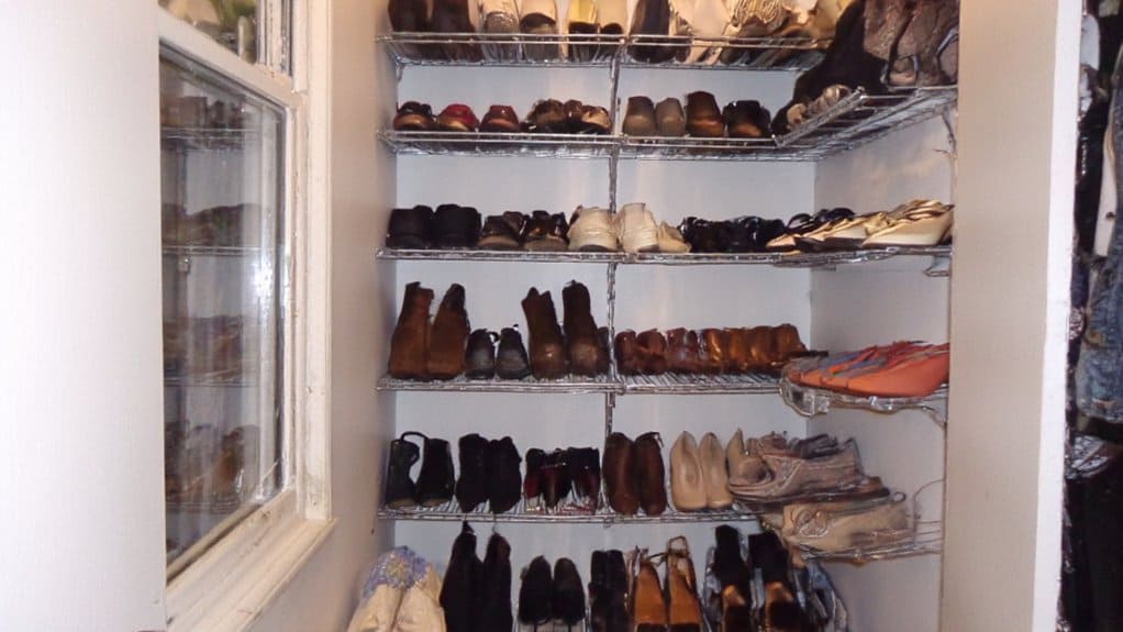 I know you might think your closet’s too small for all those shoes, but trust me, you’ve got options! I’m thrilled to share some clever tricks that’ll transform your space. Once, I stuffed sneakers everywhere—total chaos—until I discovered smart hacks. Let’s start with over-door racks; they’re a game-changer for using vertical space. Hang on, ‘cause I’ve got more space-saving gems to spill next!