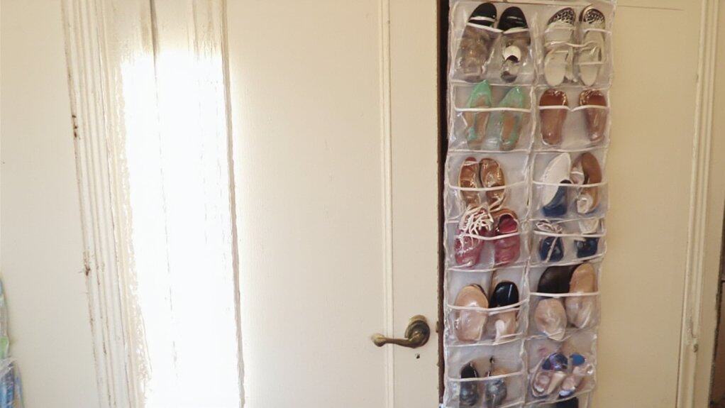 Hanging shoe pockets are an excellent solution for maximizing closet space, especially if you have limited floor room or shelves. These organizers, often made of fabric or plastic, can be hung over a closet door or on a rod, providing multiple compartments to store shoes neatly. Before purchasing, measure the available space to guarantee the shoe pockets fit properly and don’t obstruct other items in the closet.