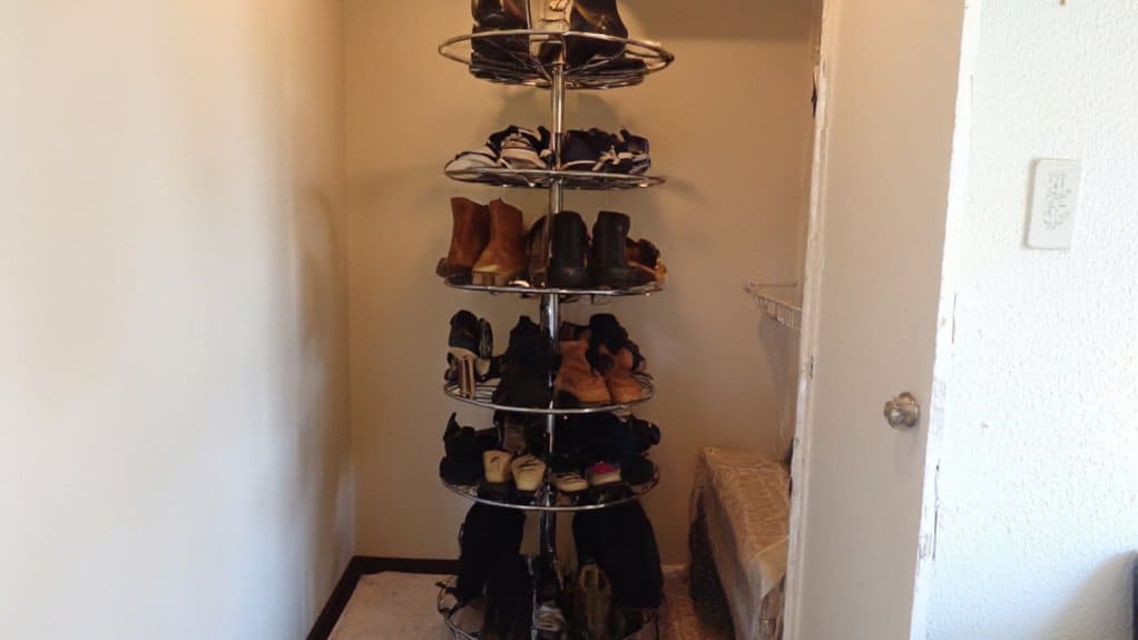To use a rotating shoe carousel effectively, start by categorizing your shoes—such as by type, season, or frequency of use—and assign sections of the carousel accordingly. Place the carousel in an accessible corner of your closet or near the door for convenience, ensuring it doesn’t obstruct other storage areas. Regularly rotate and reorganize the carousel to prioritize shoes you wear most often, keeping less-used pairs toward the back or bottom tiers.