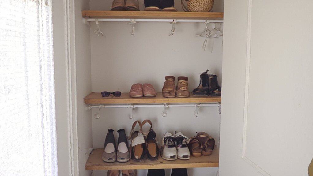 Tension rod dividers are an innovative and affordable solution for organizing shoes in a closet by creating customizable vertical spaces. To start, measure the width of your closet shelf or floor space where you plan to install the rods, and purchase adjustable tension rods that fit securely. Install the rods vertically between the shelf and the ceiling or between two shelves, spacing them evenly to create separate compartments for different pairs of shoes.