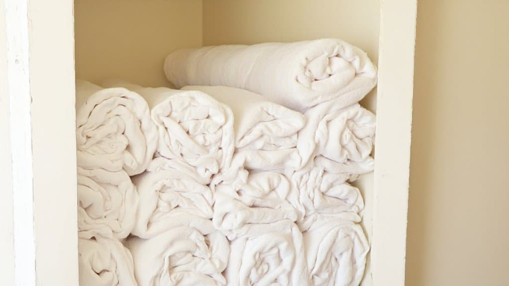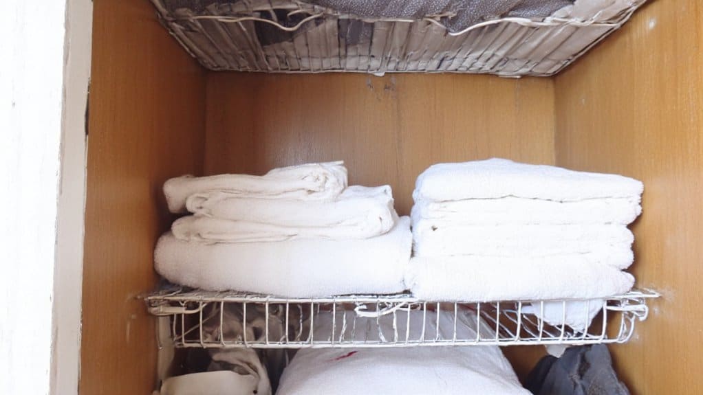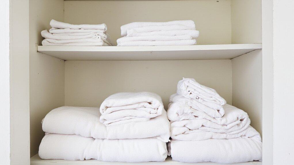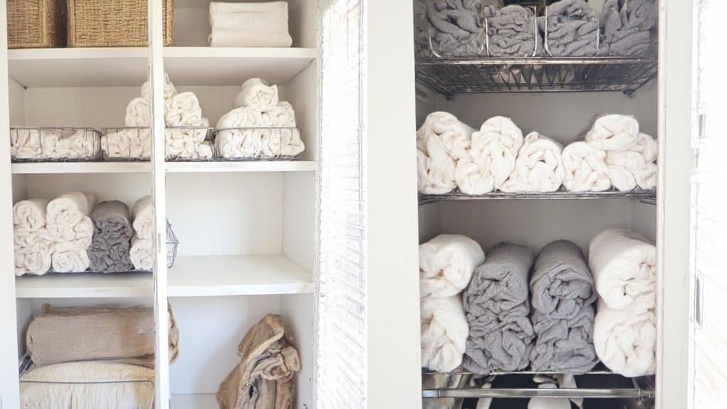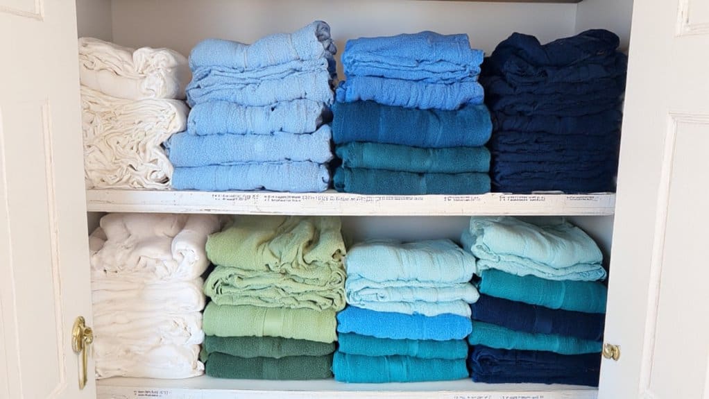 Ever wonder why your towel closet looks like a tornado hit it? Hey, I’ve been there too, frantically digging for a clean towel amidst a chaotic pile! Let’s tackle this mess together. Start by sorting your towels by color—stack ‘em neatly on shelves about 12 inches apart for easy grabs. Trust me, there’s more to this organizing magic (and yep, a funny laundry mishap story) waiting for you!