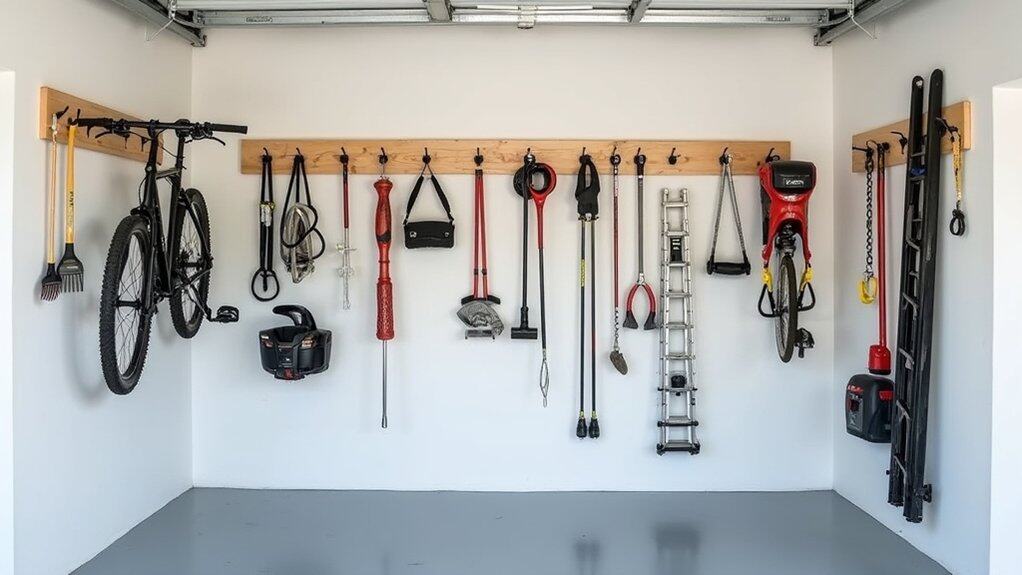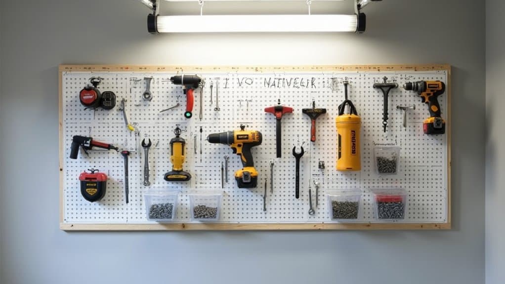 Pegboard organizers are a versatile and affordable solution for maximizing storage in a one-car garage by utilizing vertical wall space. Start by selecting a sturdy pegboard and mounting it securely to a wall or section of the garage where tools and equipment are frequently used. Confirm the pegboard is installed with appropriate anchors or studs to support the weight of heavier items like power tools or garden equipment.