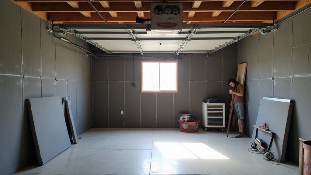 Additionally, consider adding weatherstripping or door seals around garage doors and windows to block sound from leaking out. For an extra layer of insulation, hang thick curtains or install mass-loaded vinyl barriers over walls or as a floor underlayment to further dampen vibrations. These materials, combined with strategic placement, can notably lower noise levels, making your garage shop a more considerate and functional workspace.