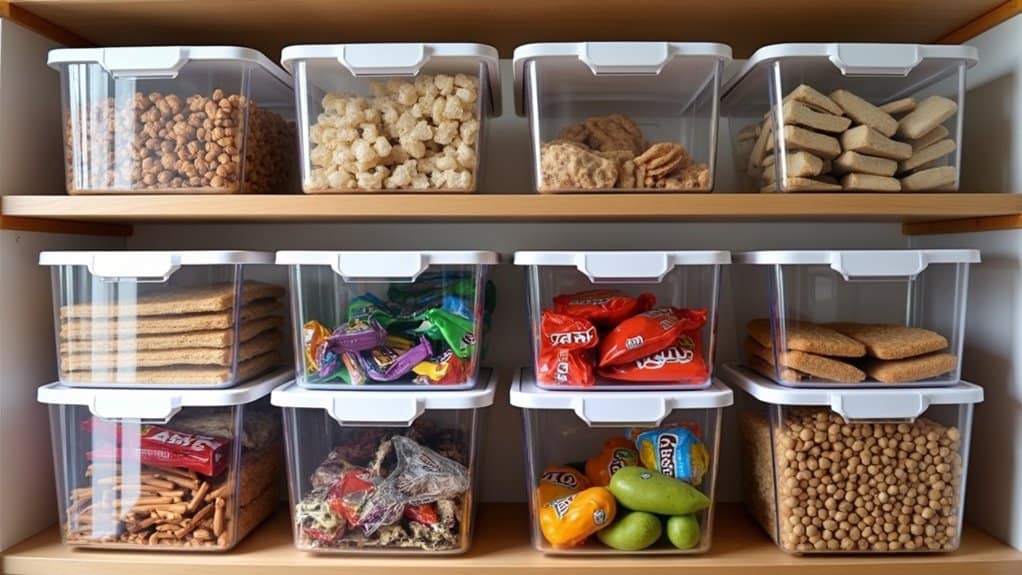 To maximize efficiency, label each bin with its contents using a label maker or simple sticky notes for a polished look. Consider using stackable clear bins if shelf space is limited, as they help utilize vertical space while maintaining visibility. Regularly check the contents to rotate older snacks to the front and discard expired items, keeping the pantry fresh. This method not only keeps your snack pantry tidy but also makes restocking a breeze since you can instantly spot what needs replenishing.