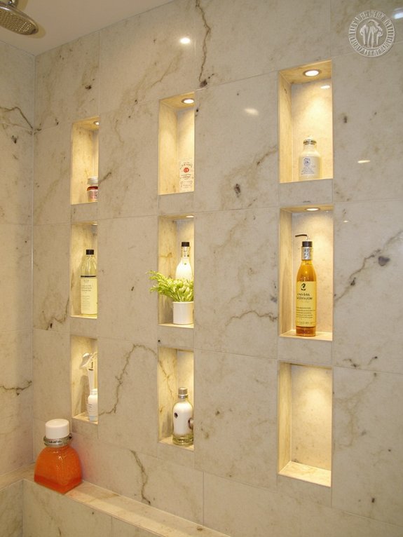 The installation requires strategic placement between studs, typically 48 inches from the floor for optimal accessibility. Pre-formed waterproof units make installation straightforward, and multiple niches can be incorporated to accommodate different-sized products. These built-in features not only improve functionality but also add lasting value to your bathroom design.