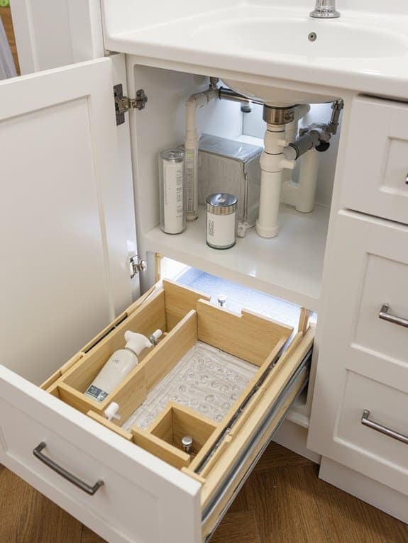 Under-sink drawer organizers transform messy cabinet spaces into efficient storage solutions. These systems use dividers, clear bins, and stackable containers to create designated spots for cleaning supplies, toiletries, and other essentials while keeping everything accessible and organized.