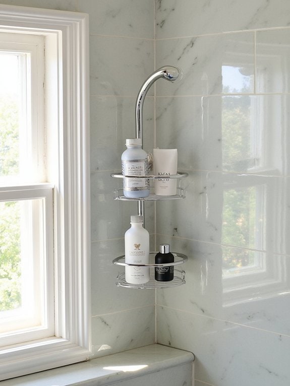 Corner shower caddies maximize storage by utilizing unused corner space, offering three distinct zones to organize bathroom essentials. These organizers come in various styles, from tension-mounted poles to adhesive corner shelves that protect tile surfaces.