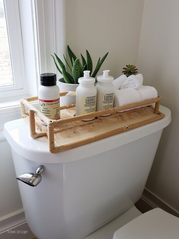The trays can store essential items such as extra toilet paper, air fresheners, and cleaning supplies while accommodating decorative elements like small plants or candles. For optimal functionality, choose a tray at least 20 inches wide and limit stored items to those used regularly to maintain organization and accessibility.
