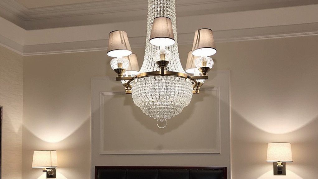 As you elevate your bedroom’s style, consider installing a custom Murano glass chandelier as your next focal point. This handcrafted piece, often spanning 24-36 inches in diameter, adds timeless elegance with vibrant glasswork. Install it within a week to transform your space instantly.