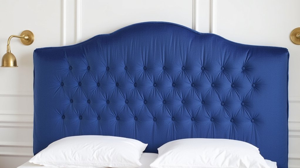 - Tufted Velvet Headboard: Opt for a deep navy, 48 inches tall.
