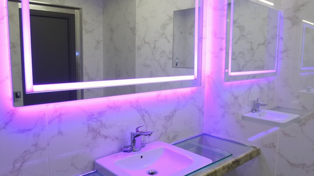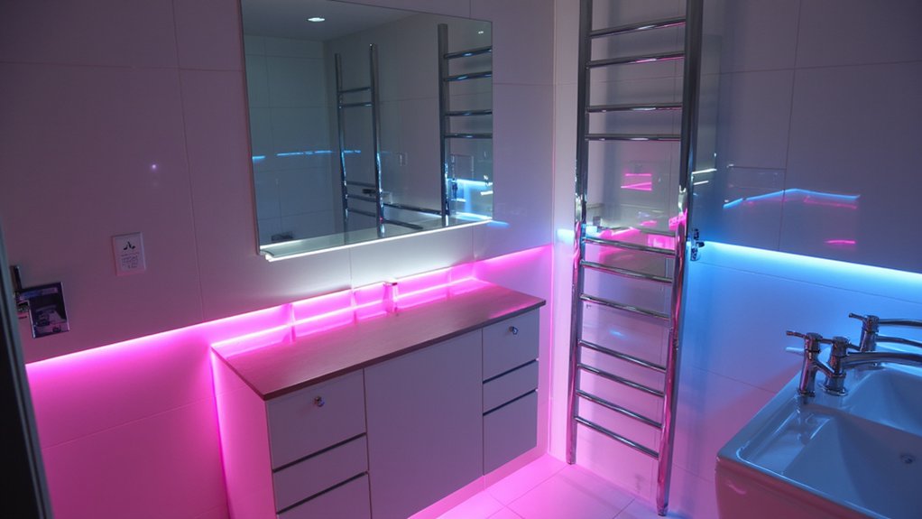 Immerse yourself in a modern twist with Neon Accent Lighting to brighten up your bathroom in a bold way. You’re transforming your space with vibrant, energy-efficient lights that add flair. Install them in 30 minutes with basic tools for a quick upgrade.