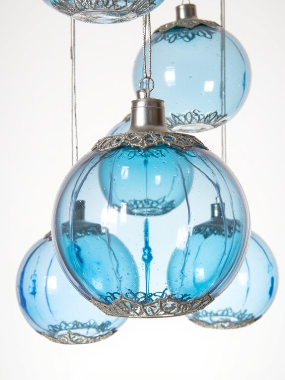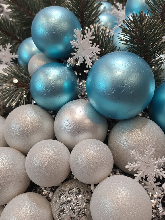 For maximum impact, mix ornaments ranging from 2-6 inches in diameter, incorporating both matte and glossy finishes. Grouping the blue pearl balls in odd numbers while layering light and dark shades adds depth and dimension. Silver or white accent pieces enhance the overall pearlescent effect, creating a cohesive and refined holiday decoration.