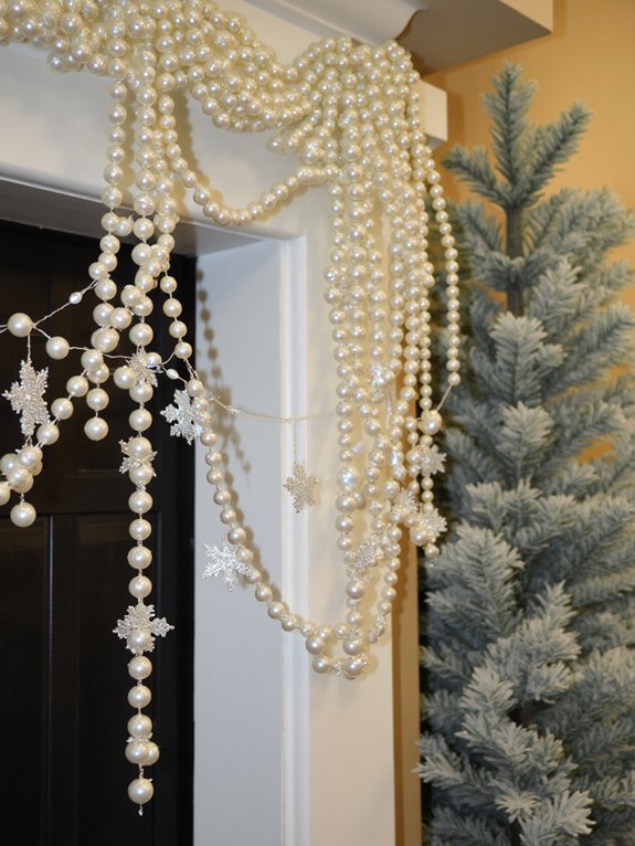 For best results, position the garlands first, spacing them 6-8 inches apart and working from top to bottom in graceful swoops. Secure the strands with floral wire, layer multiple garlands for fullness, and consider adding a light mist of glitter spray to enhance the sparkling effect.