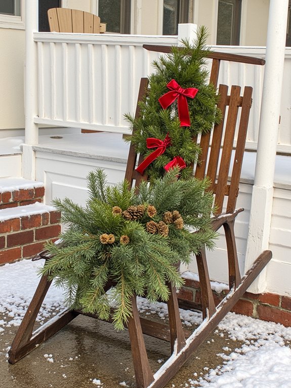A rustic wooden sled creates an inviting focal point for holiday porch displays, offering timeless charm and nostalgic appeal. Whether using an authentic antique or weathered reproduction, the sled can be artfully positioned against railings or walls to establish a classic winter scene.