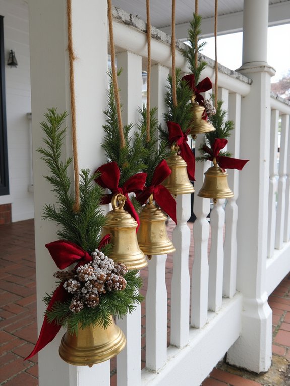 The displays can be customized through various mounting options and complementary decorative elements. Hanging bells from rafters with colorful ribbons, creating wall-mounted arrangements with natural greenery, or positioning freestanding vintage bell displays near entrances all provide elegant solutions for holiday porch decor. Battery-powered lights can enhance their evening appeal.