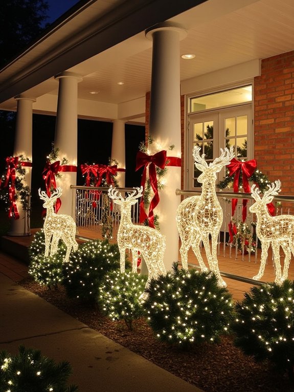 A charming reindeer family display transforms any outdoor space into a magical holiday scene. The arrangement features three to five illuminated figures, standing 24 to 48 inches tall, positioned to create a natural, lifelike grouping that draws the eye and enchants passersby.