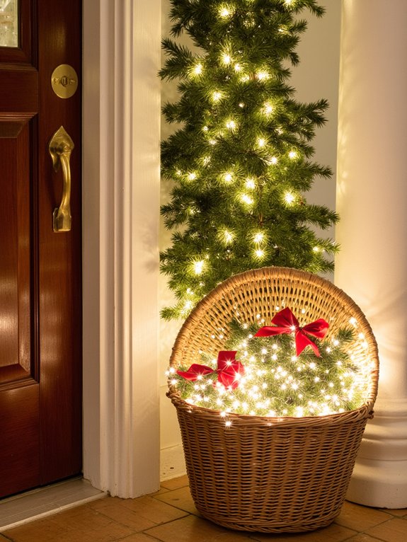 Luminous porch basket lights offer a simple yet stunning way to enhance outdoor spaces during the holiday season. By combining woven baskets with battery-operated string lights and decorative elements, these arrangements create an inviting glow that welcomes visitors and adds festive charm to any entryway.