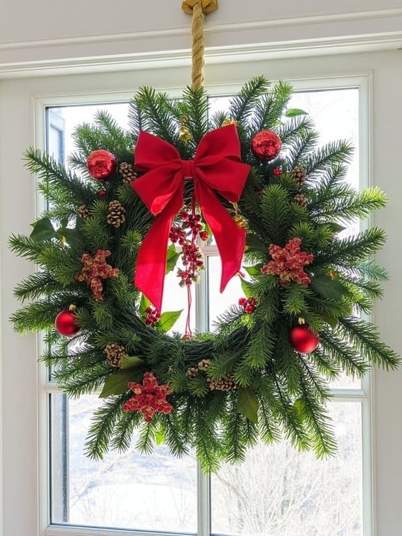 The technique works with any wreath type and size, from traditional pine to modern willow designs. Simply drape 2-inch wide decorative ribbon over your curtain rod, attach it to your wreath, and adjust the height as needed. This method not only protects your walls but also adds an elegant finishing touch to your seasonal decor.