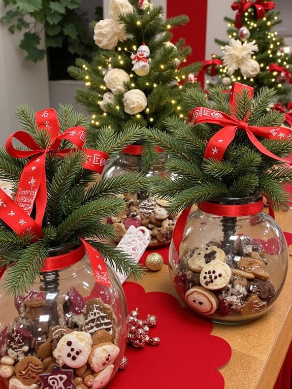 A Christmas Cookie Jar Display transforms a kitchen counter into a festive focal point while keeping holiday treats easily accessible. Using 1-quart glass jars with secure lids creates an attractive and practical storage solution for seasonal cookies and candies.