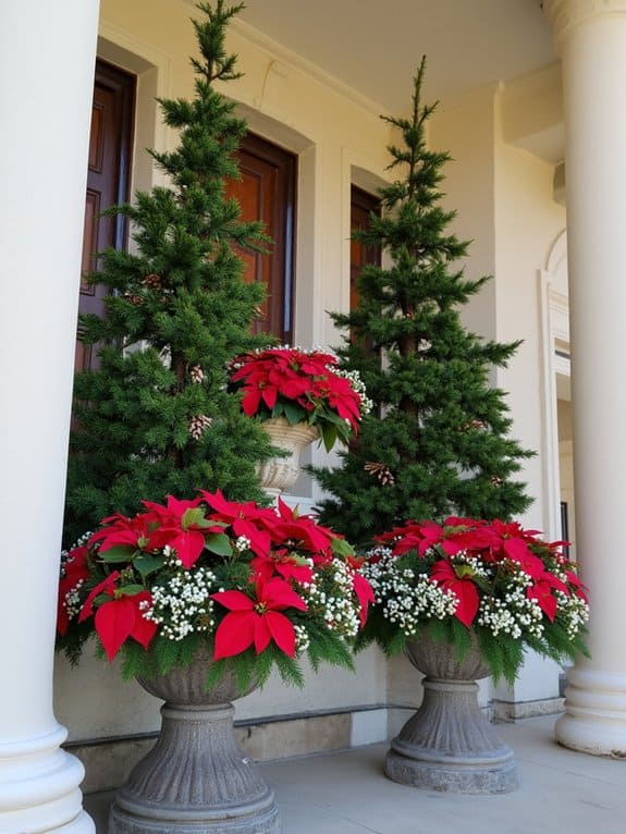 These decorative arrangements serve multiple purposes: creating memorable first impressions, expressing personal style, adding seasonal vibrancy, and offering sustainable options as plants can be transferred to your garden after the holidays. The balanced combination of heights and colors ensures maximum visual impact while welcoming guests with festive charm.