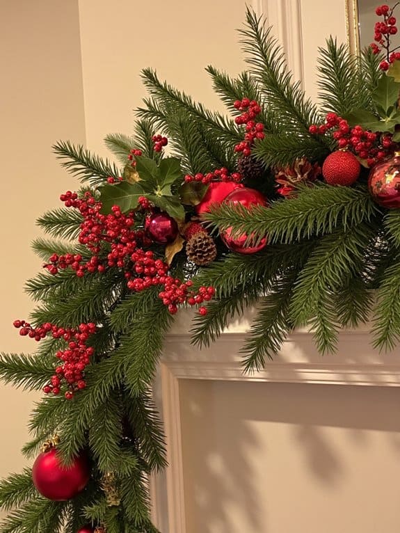 A mantelpiece garland transforms your fireplace into a festive focal point by layering different decorative elements. Whether opting for rustic charm or traditional red-and-green themes, the garland creates visual interest and holiday warmth in your indoor space.