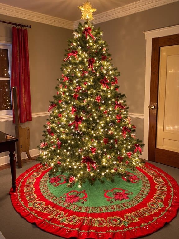 A Christmas tree skirt serves as an elegant foundation for holiday decorations while hiding the tree stand. By crafting your own skirt using materials like red velvet or green felt, you can create a personalized accent piece that complements your seasonal decor. The project requires basic sewing skills and takes about two hours to complete.