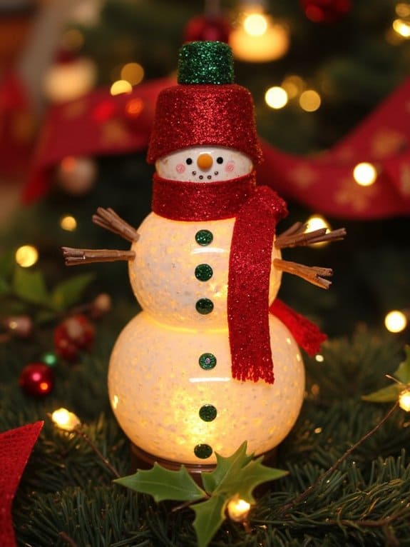 Transform flameless tea lights into charming miniature snowmen with this quick holiday craft project. Using a black marker to create faces, red pipe cleaners for festive bows, and a dab of hot glue, these decorative pieces come together in under 30 minutes.