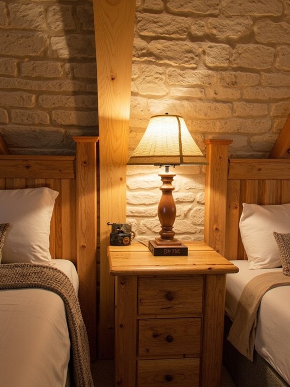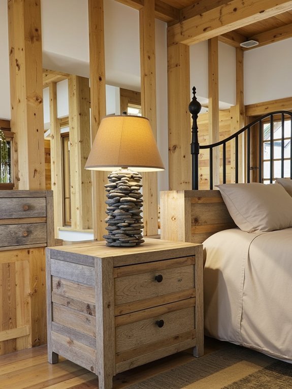 The lamps serve both as functional lighting solutions and striking decorative elements in rustic bedroom designs. Standing 24-28 inches tall and utilizing 40-60 watt bulbs, they offer ideal task lighting while bringing organic textures and materials into the space, seamlessly blending natural elements with practical bedroom lighting needs.
