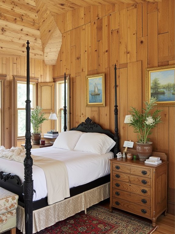 Vintage oak panels repurposed from old furniture and architectural elements can be transformed into captivating wall art. These weathered pieces, with their rich history and natural patina, add authentic rustic charm to bedroom spaces while serving as conversation-starting focal points.
