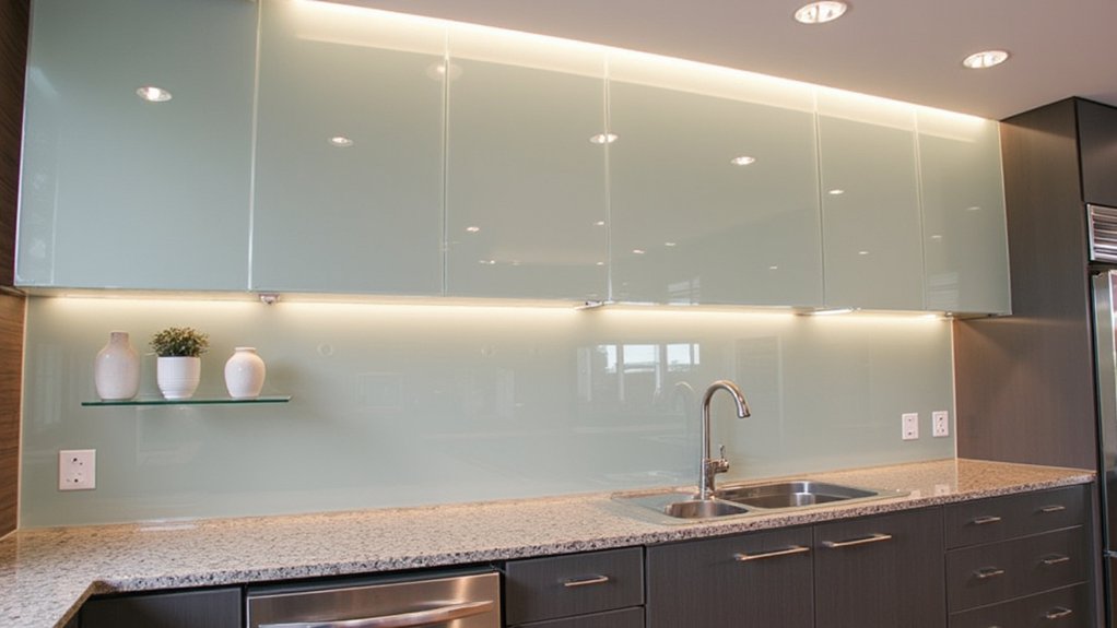 Let’s shift focus from smart kitchen islands to another eye-catching element: innovative backsplash materials that can transform your space. You’re not stuck with boring tiles anymore; new options bring style and easy care to your kitchen walls.