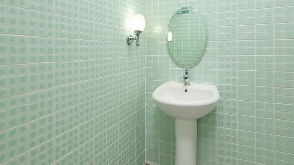 Immerse yourself in the charm of a retro tile vanity to give your compact powder room a unique twist. You’re transforming a tiny space into a vintage haven with bold, patterned tiles that pop.