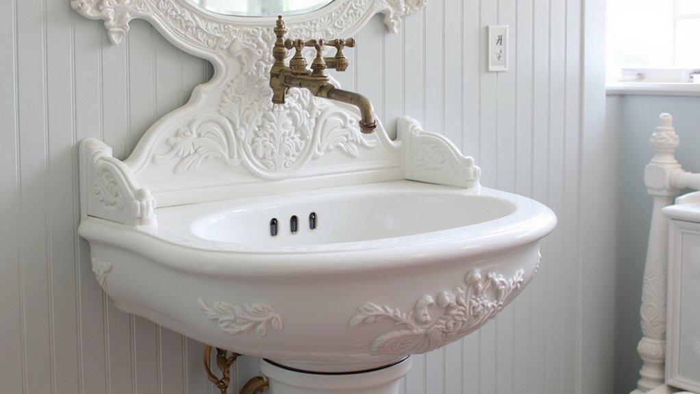 If you’re aiming for a timeless charm in your compact powder room, a vintage pedestal sink can transform the space. It’s elegant, space-saving at about 22-24 inches wide, and perfect for tight spots.