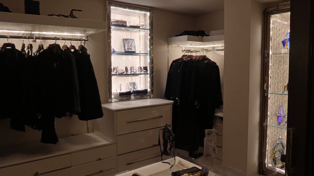 Hidden LED lighting can transform a walk-in closet by adding both functionality and a touch of elegance. Start by installing LED strip lights under shelves or along the edges of clothing rods to illuminate your items without creating harsh glare. Make certain the wiring is concealed behind panels or within cabinetry for a clean, seamless look that enhances the aesthetic of the space.