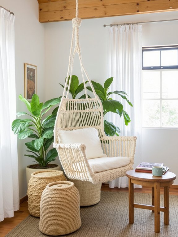 Complete the nook with plush pillows, a soft throw blanket, and practical accessories like an adjustable LED lamp and side table for drinks. Position the hammock to take advantage of natural light from nearby windows, creating an inviting space that combines comfort with functionality.