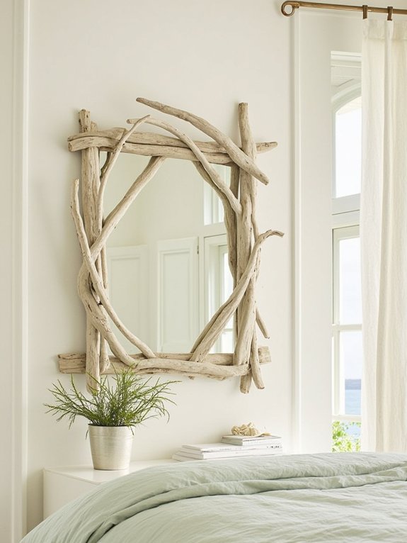 Driftwood mirror frames create stunning coastal-inspired wall decor by transforming ordinary mirrors into artistic focal points. These natural wooden elements, weathered by sand and sea, bring an authentic beach aesthetic to indoor spaces while adding organic texture and visual interest.