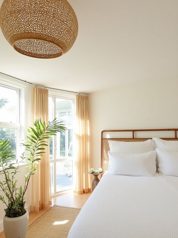Rattan ceiling light fixtures offer a natural and stylish lighting solution for summer bedroom designs. These woven pendants create stunning filtered light effects while bringing organic texture and coastal charm to any space. The intricate patterns cast by the fixtures transform ordinary rooms into relaxing, bohemian retreats.