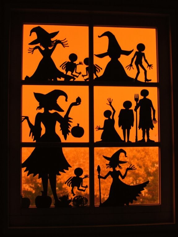 Spooky Window Silhouettes transform homes into haunting displays using simple black cutouts against lit windows. By placing carefully cut shapes made from black poster board onto window panes and illuminating them from inside, homeowners can create dramatic shadow effects visible to passersby.