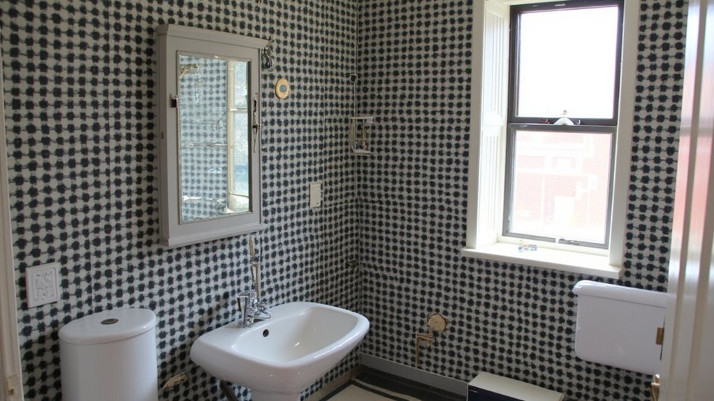 Measure Your Space: Double-check your wall dimensions to order 35 square feet of wallpaper for complete coverage. Geometric pattern wallpaper can transform your bathroom into a modern haven if you plan right. Take about 30 minutes to measure twice for accuracy.