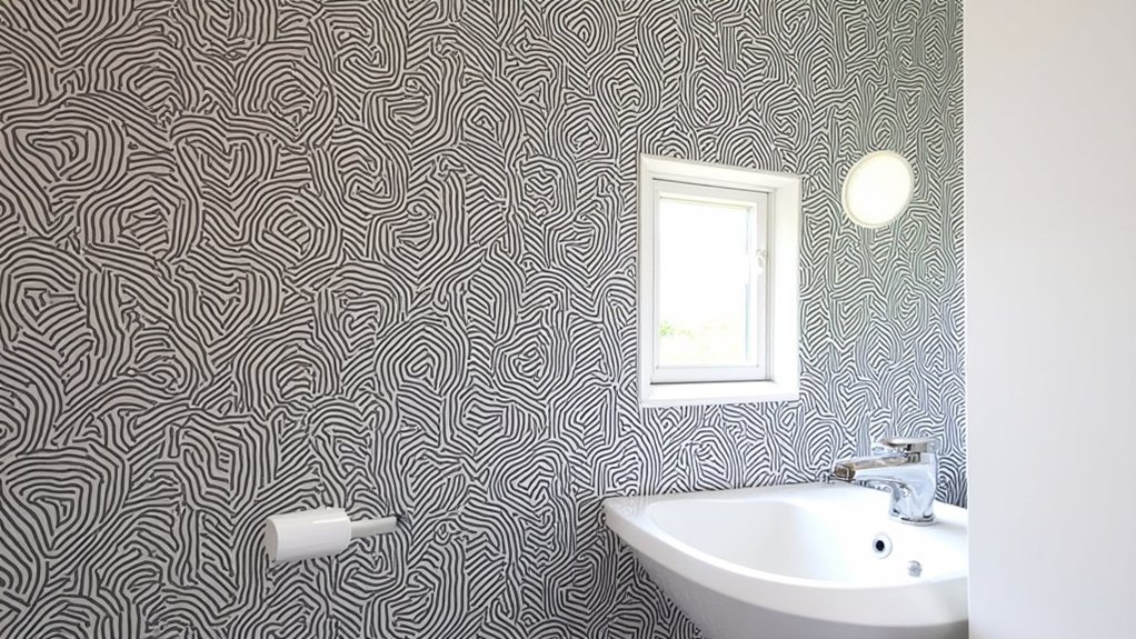 A touch of nature can redefine your bathroom with textured stone wallpaper that mimics real rock surfaces. Imagine transforming your space into a serene, earthy retreat with just a few rolls. You’ll love the realistic pebble or slate designs, often 24 inches wide, covering a standard 5×8-foot wall in about 2 hours.