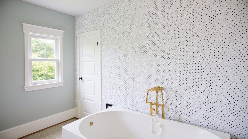 Plunge into a playful vibe with whimsical polka dot wallpaper that can brighten up your bathroom instantly. You’ll love how these cheerful dots, in sizes from 1 to 3 inches, transform a bland space. Install it on a single wall, ideally 8×10 feet, for a bold accent within two hours.