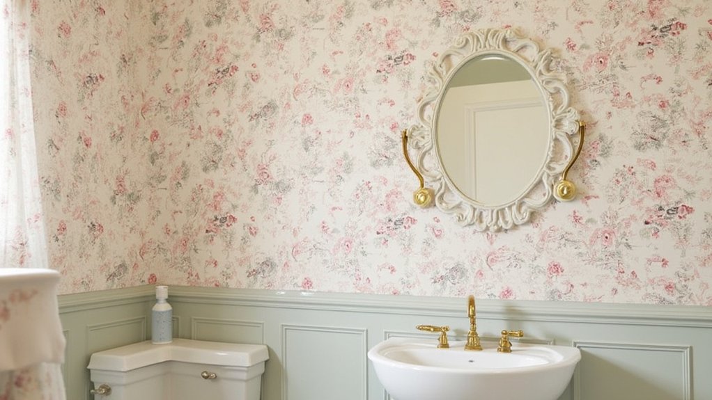 Inspiration strikes when you explore vintage floral wallpaper for your bathroom, bringing a timeless charm to the space. You’ll love how these delicate patterns, often in soft pastels, transform a small 5×7-foot bathroom into a cozy retreat. Install it on a single accent wall to avoid overwhelming the room.