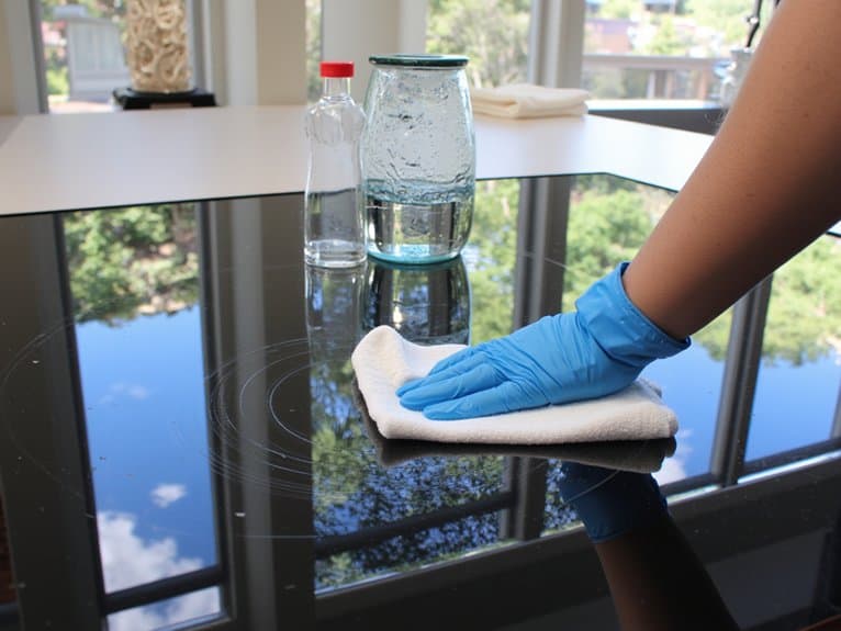 Many eco-conscious homeowners prefer natural cleaning solutions that effectively remove stubborn stains while protecting their glass cooktop’s delicate surface. The vinegar benefits are twofold: it cuts through grease while being gentle on glass surfaces. When combined with baking soda, these pantry staples create a powerful cleaning paste.
