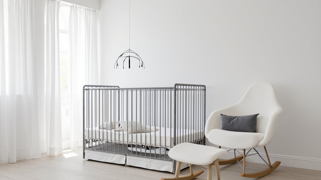 Switch your focus from the enchanting forest vibes of a Whimsical Woodland Theme to the clean simplicity of a Modern Minimalist Theme. You’re creating a calm, uncluttered space for your baby with sleek lines and neutral tones. Use a crib with a 60-inch by 30-inch footprint, and paint walls in soft gray within two days.