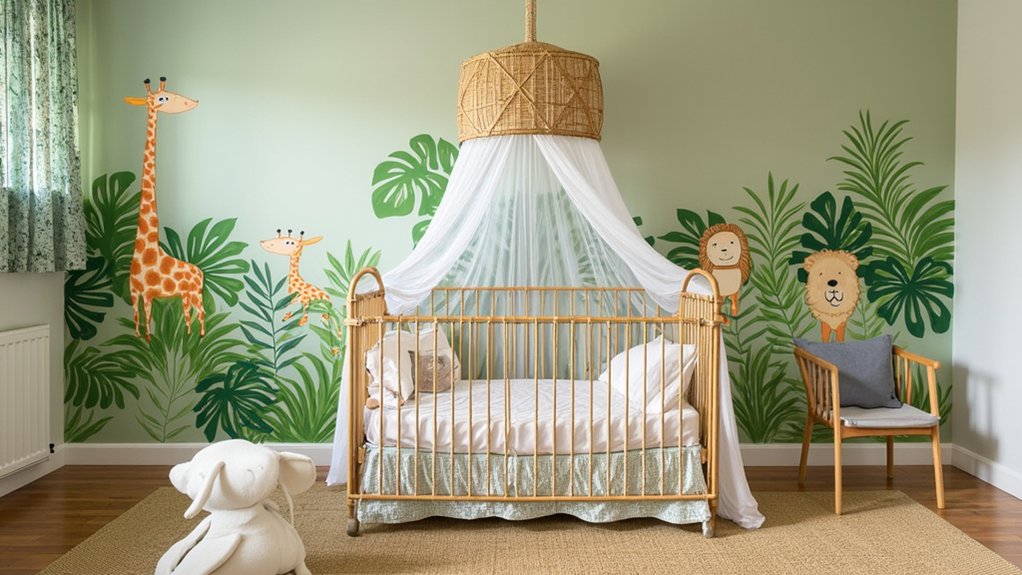 If you’re ready to transform your nursery into a vibrant escape, plunge into the Tropical Safari Theme. Imagine lush greens and exotic vibes right in your baby’s space with just a few strategic touches.